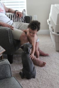 - 3 Major skills gained—can drink from a cup without spilling, can undress himself (except shirt), and can get his socks and shoes on himself. Also, got over his fear of dogs after we got Luna!