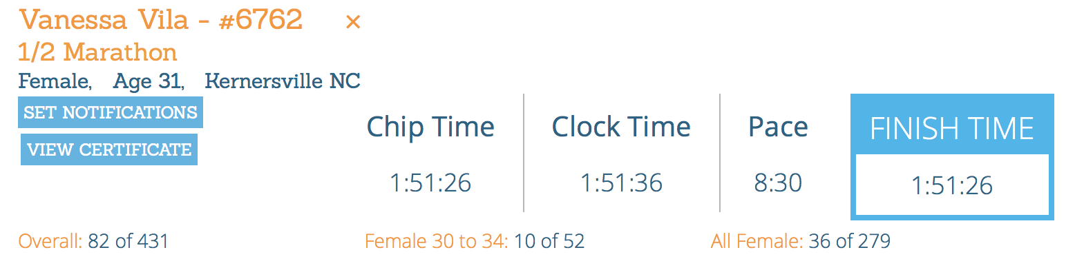 Took me 6 years to reach this goal… feels so good to accomplish it. After last year’s failed attempts in Raleigh and Virginia Beach, everything lined up darn near perfectly today. I’m really thankful for my body for being physically capable of sustaining an 8:30 pace for 13 miles! Also glad that I was able to keep up the positive self talk, as this morning the doubts crept in. And I’m so thankful to my husband for being so supportive of my running journey. I am so grateful, and so blessed. Thanks for coming on the journey with me!