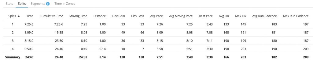 Pre-Race: I arrived plenty early, and the venue was quite small so I got good parking, saw some friends, and began my warm-up. Ran 20 minutes (2 miles) and felt pretty hot. My Garmin told me I needed to rest for 20 hours after that warm-up, which didn’t make me feel great since I was taking it nice and easy on the warm-up. I was able to scope out the course (Route Recon!) so I felt decent about knowing where the turns and hills were.