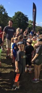 9:30 Gabe started the kids race. I attempted to carry Asher and the backpack! Couldn’t keep up with Gabe. He had fun though (and Asher ran a bit of the course too!):