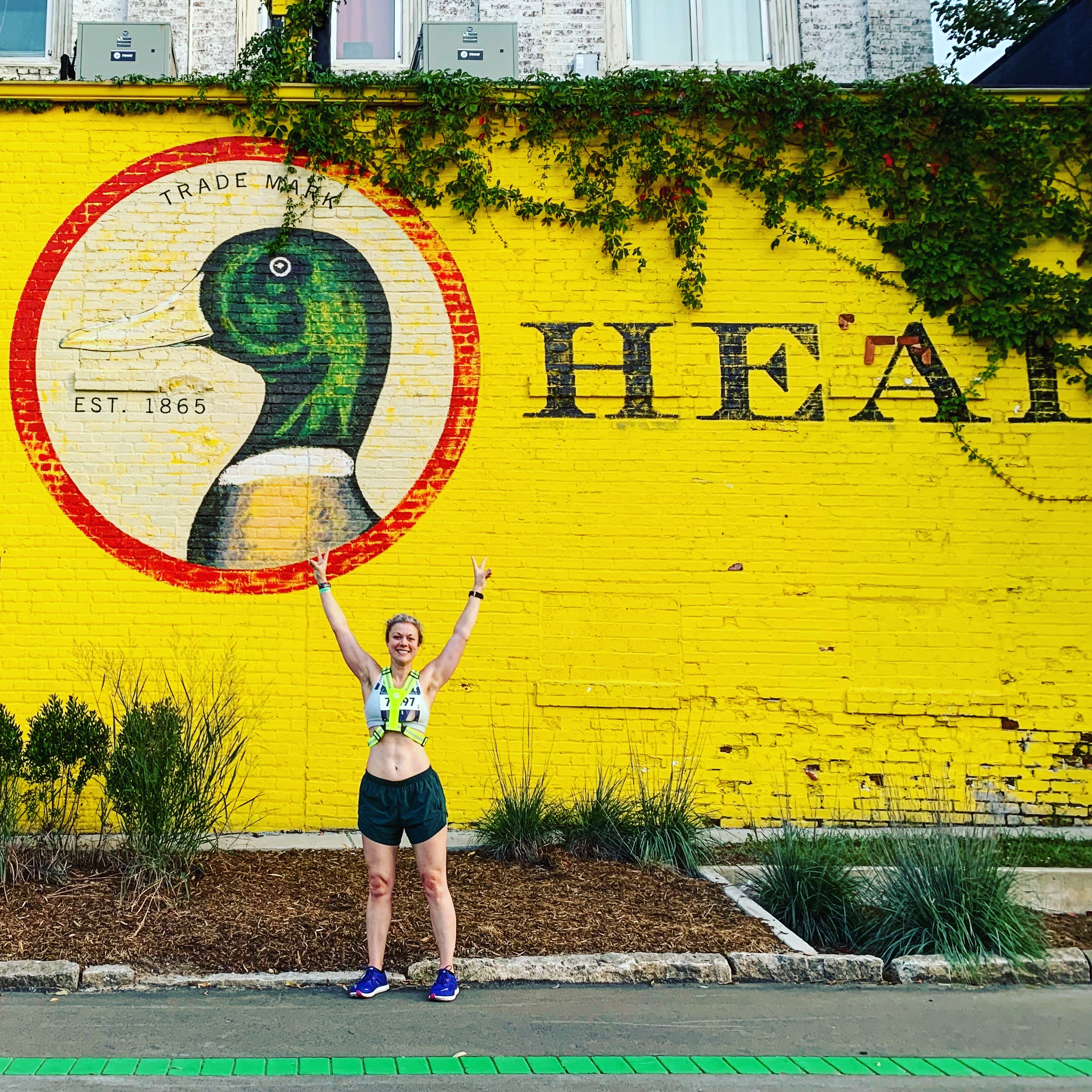 Pre-Race: I told K I wanted to warm-up a mile. We ended up doing 0.6 on the greenway, and getting some fun pics at the Duckhead building: