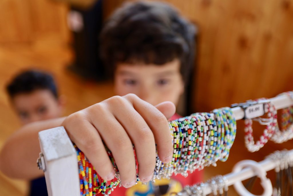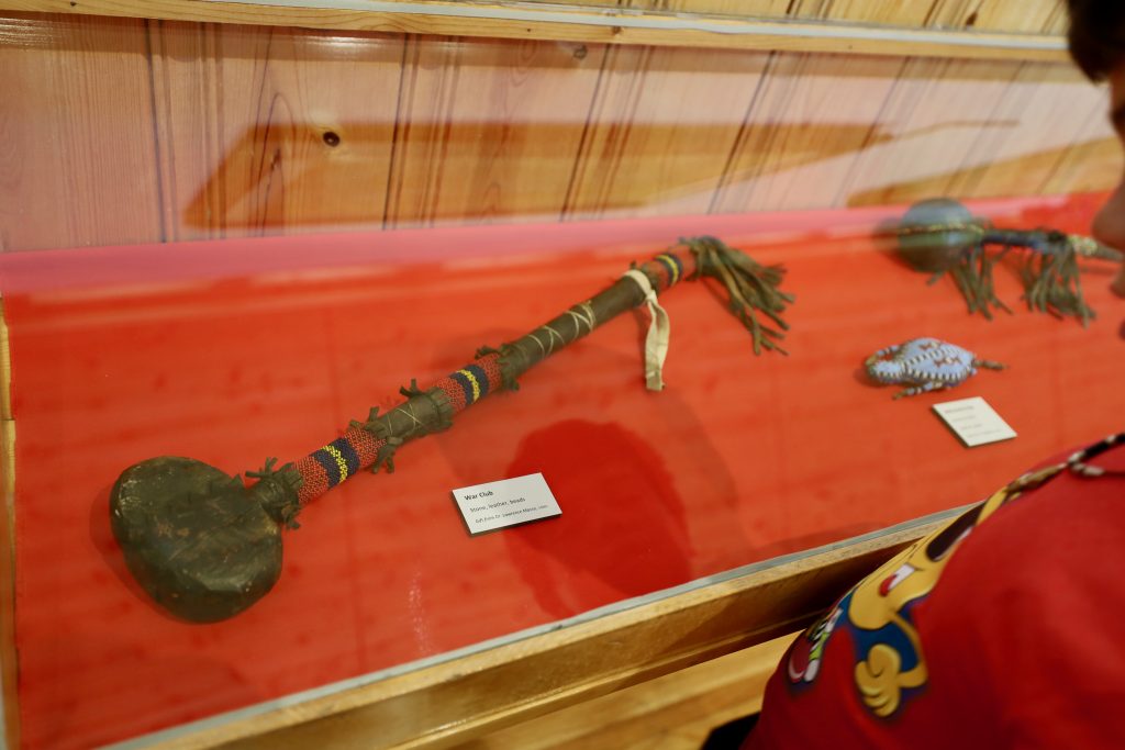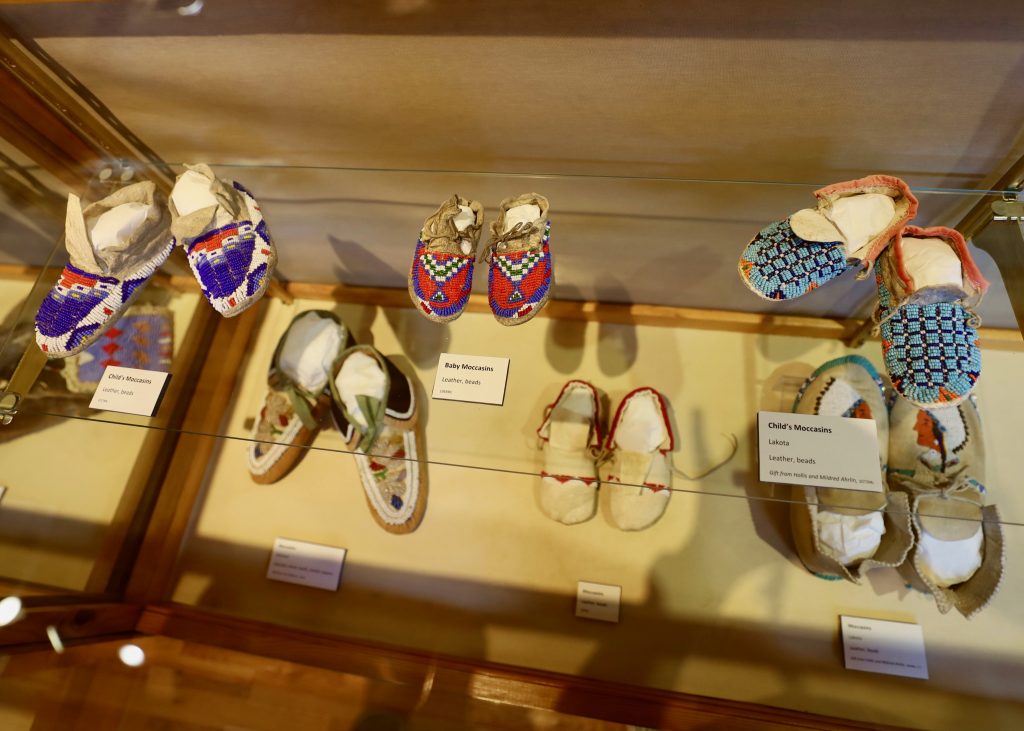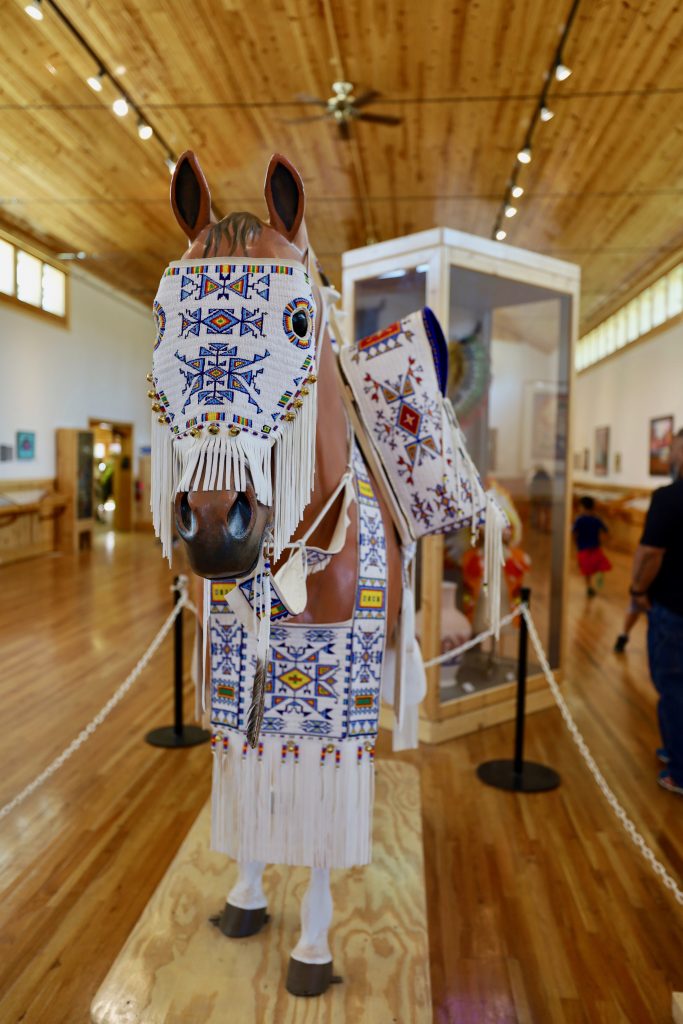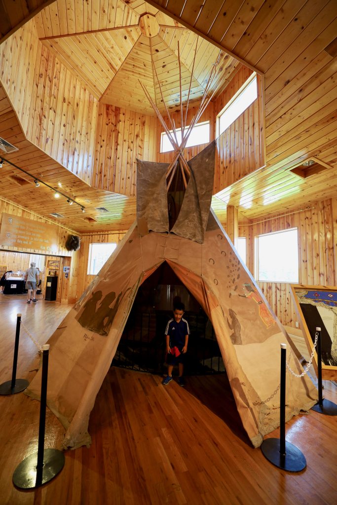 We parked and walked into the large museum area. I could see display cases with moccasins, tomahawks, tribal dresses, a very large teepee, colorful photos and artwork on the walls… Very cool!