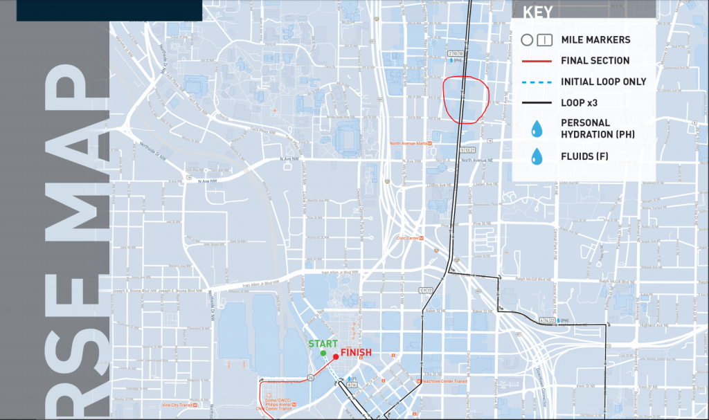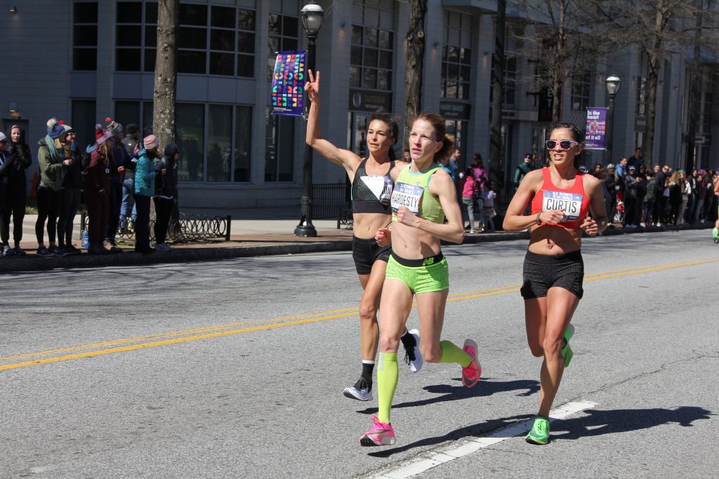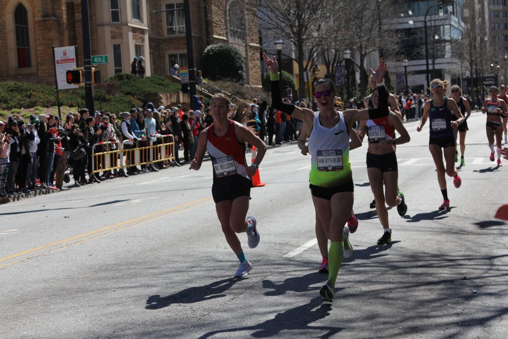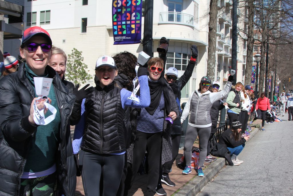 After a 1 mile-ish walk, we arrived at 4th and Peachtree NE. Oiselle had a “cowbell corner” that turned into a whole city block of our team—truly an awesome sight! All of my race photos are here.
