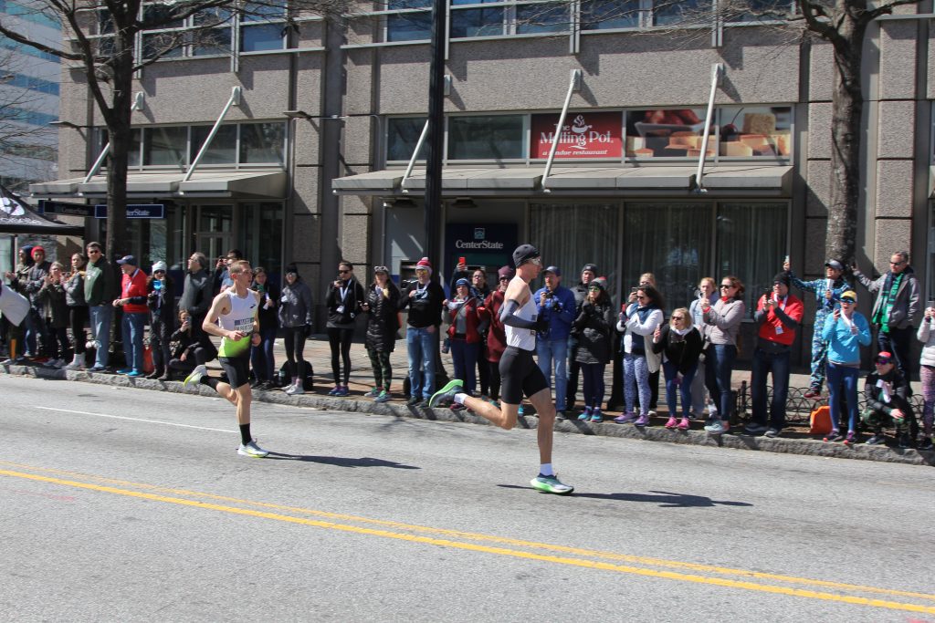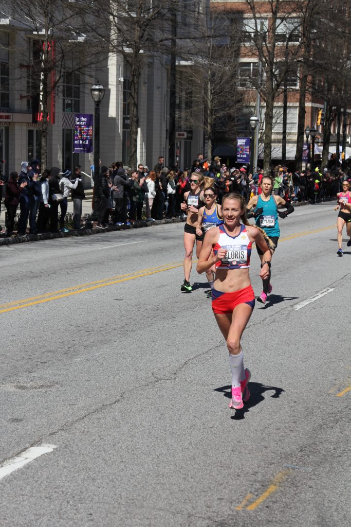 I can’t really put into words how exciting this was, to have the best marathoners in the US running towards me… then running past me, just a few feet away. Especially the women—all of my running heroes, running together in a group, and I was there to see it!! I was just in awe of their speed, and talent. I guess this could sum it up: my Garmin kept giving me a “stress alert,” suggesting I need to slow down and take some deep breaths. I was already standing still, so I tried the deep breaths, but it was just so freakin awesome! I’m sure my heart rate was high from the excitement–I couldn’t contain myself. This felt like Christmas for RunNerds like me 🙂 The giddiness continued for hours!