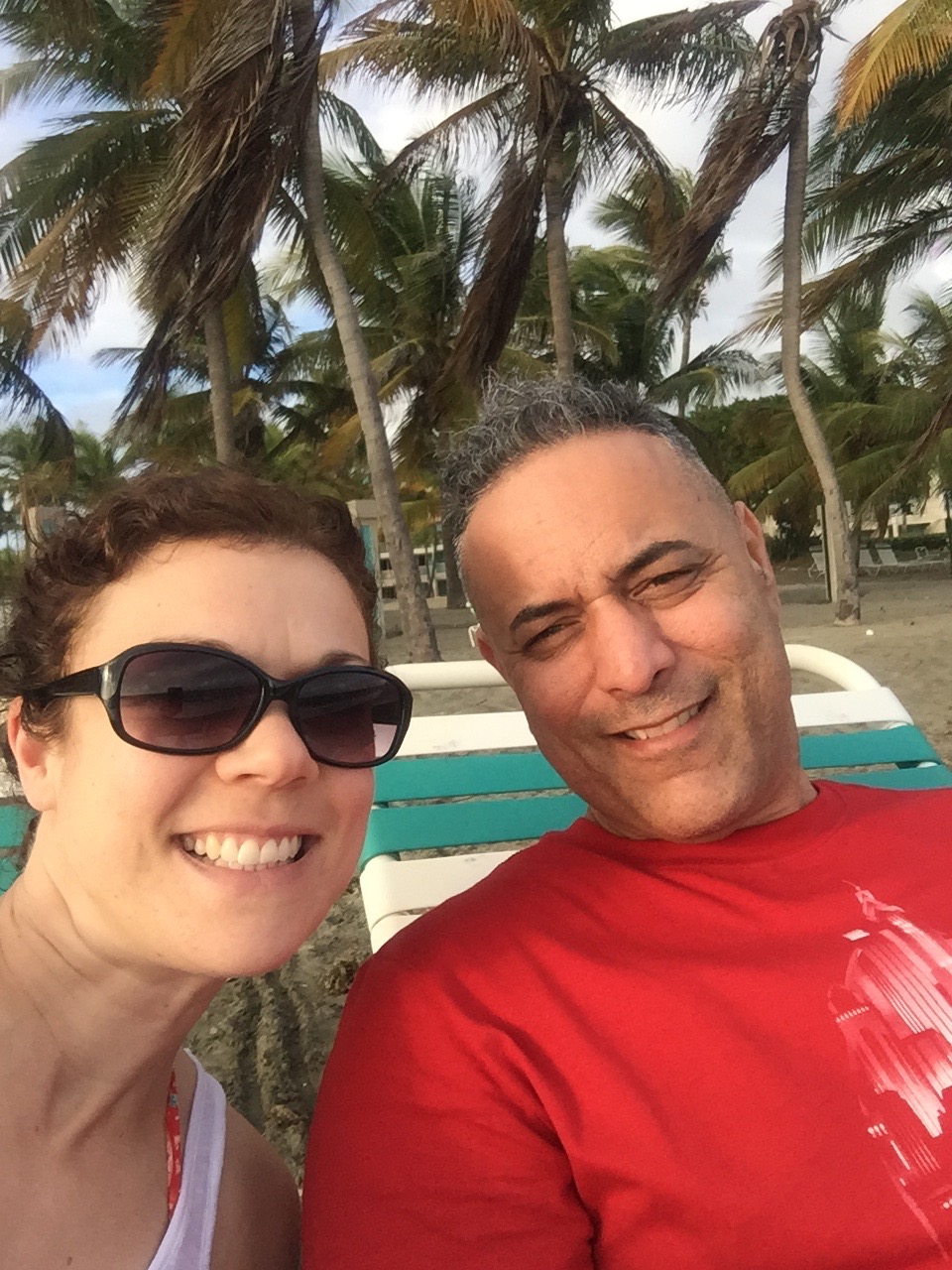 To my delight, the cover article on United airlines “Hemisphere” magazine was about San Juan, so I had some reading material for the first flight. After a quick layover in DC, I realized I had completely jinxed us! The flight was freezing, and I hadn’t brought a jacket, as it was 72* when we left Greensboro, and Puerto Rico was going to be 70-80* the entire time. Javi shared his jacket with me, but I’d oscillate between hot and cold. He was coughing and sneezing, still getting over his cold. The lady next to me had her bright iPad on the entire flight. The pilot kept updating us on the status of the Redskins game (Who cares!? lol) No good sleep, needless to say. In a slight drizzly rain, we arrived at 2:30 AM completely wiped.