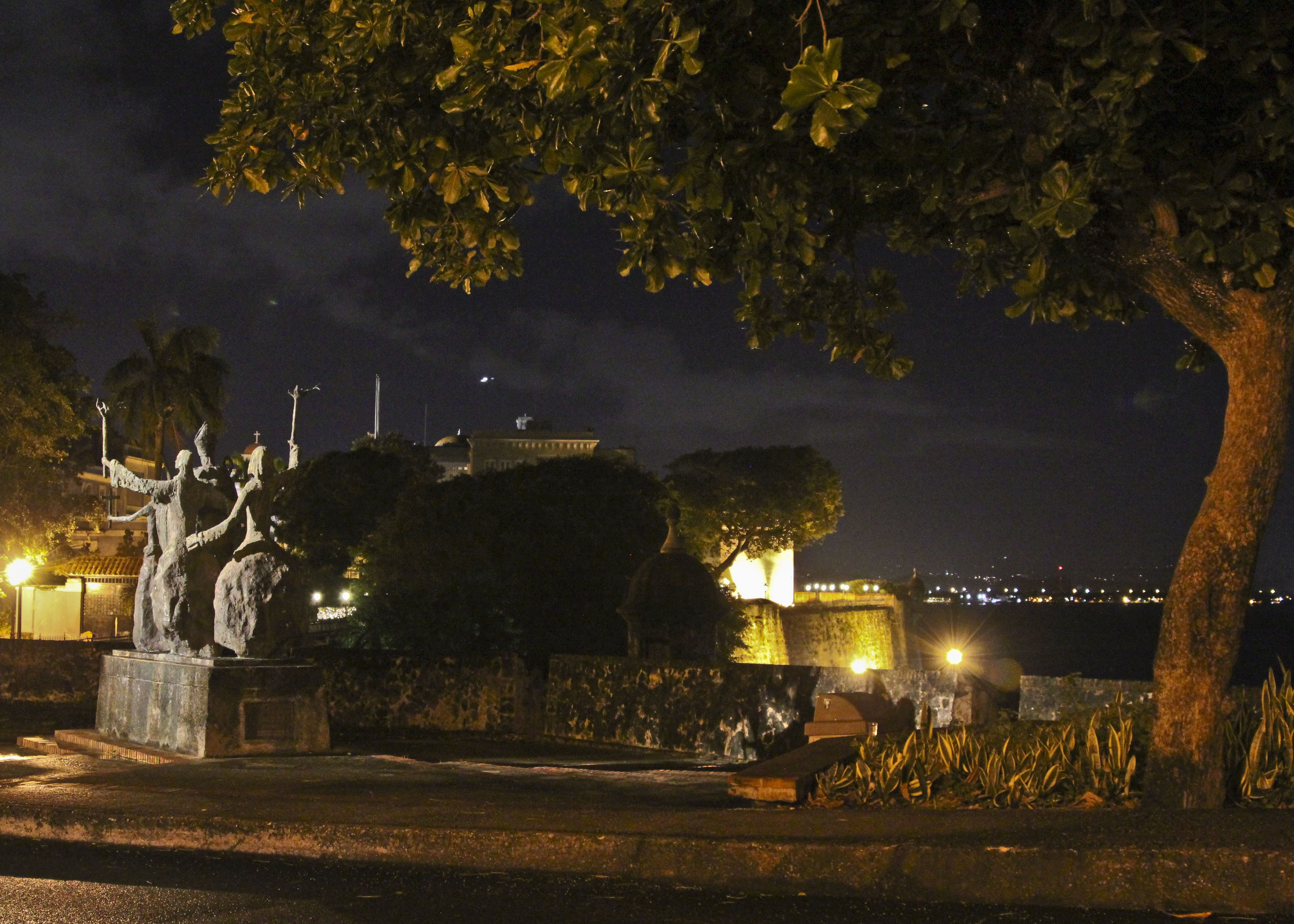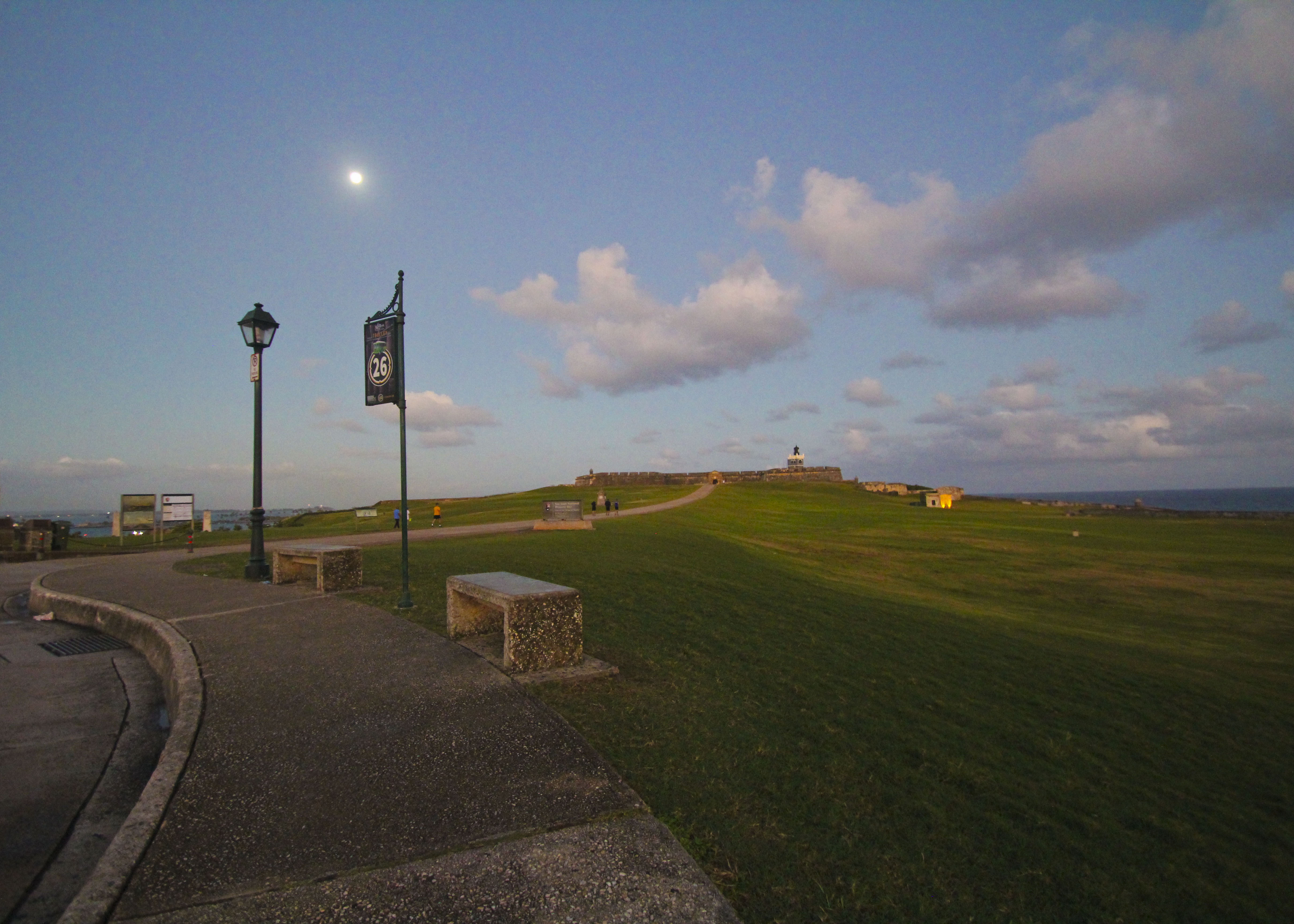 I had made the plane & hotel reservations back in Sept/Oct, but somehow the car rental eluded me, and I didn’t make the reservation until the week prior to our trip! I booked thru Expedia, but the “EZ rental” not so easy. They weren’t located at the airport, like Hertz, Avis, and the others. So, we had to find the shuttle, which thankfully wasn’t too hard. Then the driver took another family to their hotel first. We finally got our rental, a red Kia Rio. Right down the street was a happening place, Bebo’s BBQ, so we ordered pollo y arroz con arandulas–chicken and rice with beans. Yum! Our GPS didn’t work quite right, but we found our way to Old San Juan. Drove around a bit, took a little nap, then waited for sunrise at the old fort, El Morro (cover photo at top was taken at sunrise at El Morro).
