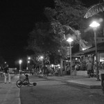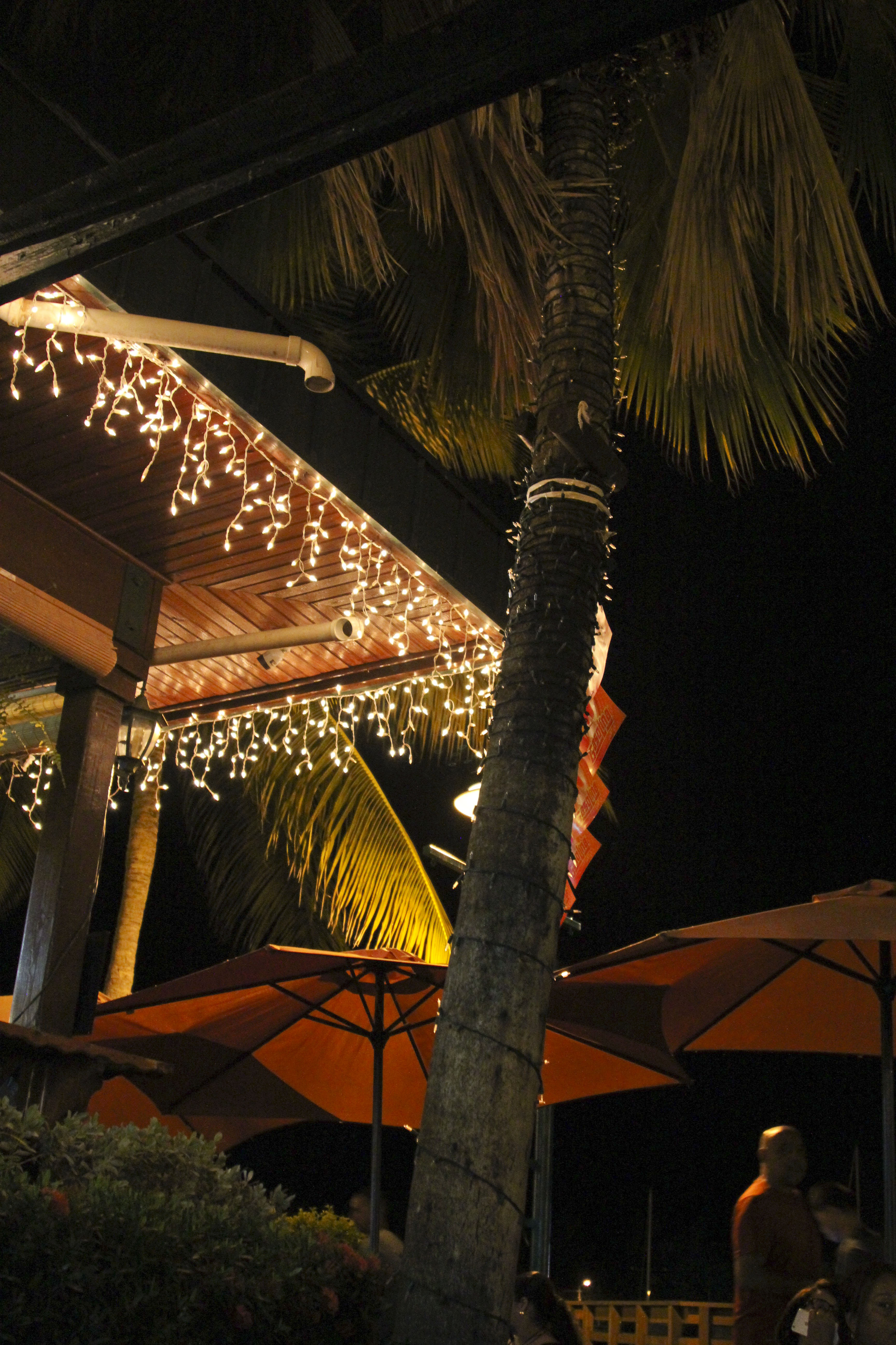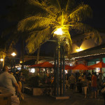 We got ready for dinner around 6:30, and drove down the beach to La Guancha. It’s the local hangout spot, a boardwalk with open air kiosks, food, dancing and loud music, and lots of families enjoying themselves. We checked out some of the kiosks, then had a late dinner of empanadillas de carne, tostones rellenos con carrucho (conch), y Medalla beer–the local beer.