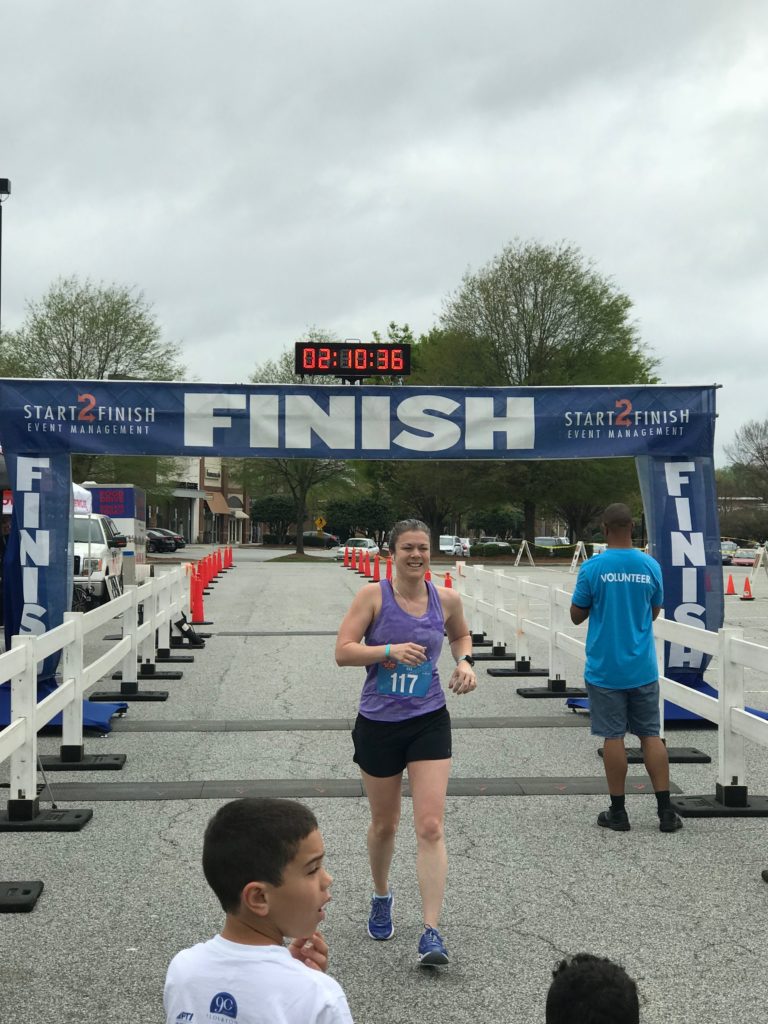 Heading up to mile 8, I felt worse and worse, and finally took some walking breaks to help my stomach cramps subside. I got passed by a bunch of ladies, which never feels good, considering I was in maybe 4th or 5th place at the turnaround. I thought back to the Richmond half marathon, walking from miles 8 to 12 (that sucked!!) and also the Raleigh RnR race in 2015 where I also felt crummy. This isn’t a new thing for me, but I guess I still haven’t figured out how to prevent it. This time I am positive I was fully hydrated and my gut didn’t have any breakfast left in there… so I’m thinking it must have been the caffeine in the GU, or the Nuun endurance formula, or both. It was also warmer than I’ve been running in lately, so I was a little hot but nothing terrible. Sometimes the heat/humidity does make it worse…so perhaps that did me in??