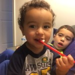 Breakthestigma_logo_fb-1024x1024Good thing it was a “no pressure” race, because of course Asher chose Friday night to wake us up about 5 times 🙁  Not sure if it’s his molars coming in or what, but it’s funny because he will only go back to sleep for Daddy.  If I go in and cover him up, tell him to go back to sleep, he responds by crying more.  Oh well!  Needless to say, I felt worn out and lacking energy Saturday morning, plus the race started at 11, so I sat around for several hours after breakfast.  Good for digestion, not great for motivation.  I did have fun with these two, who we affectionately (and accurately) call Chaos {Asher} and Mayhem {Gabe}.