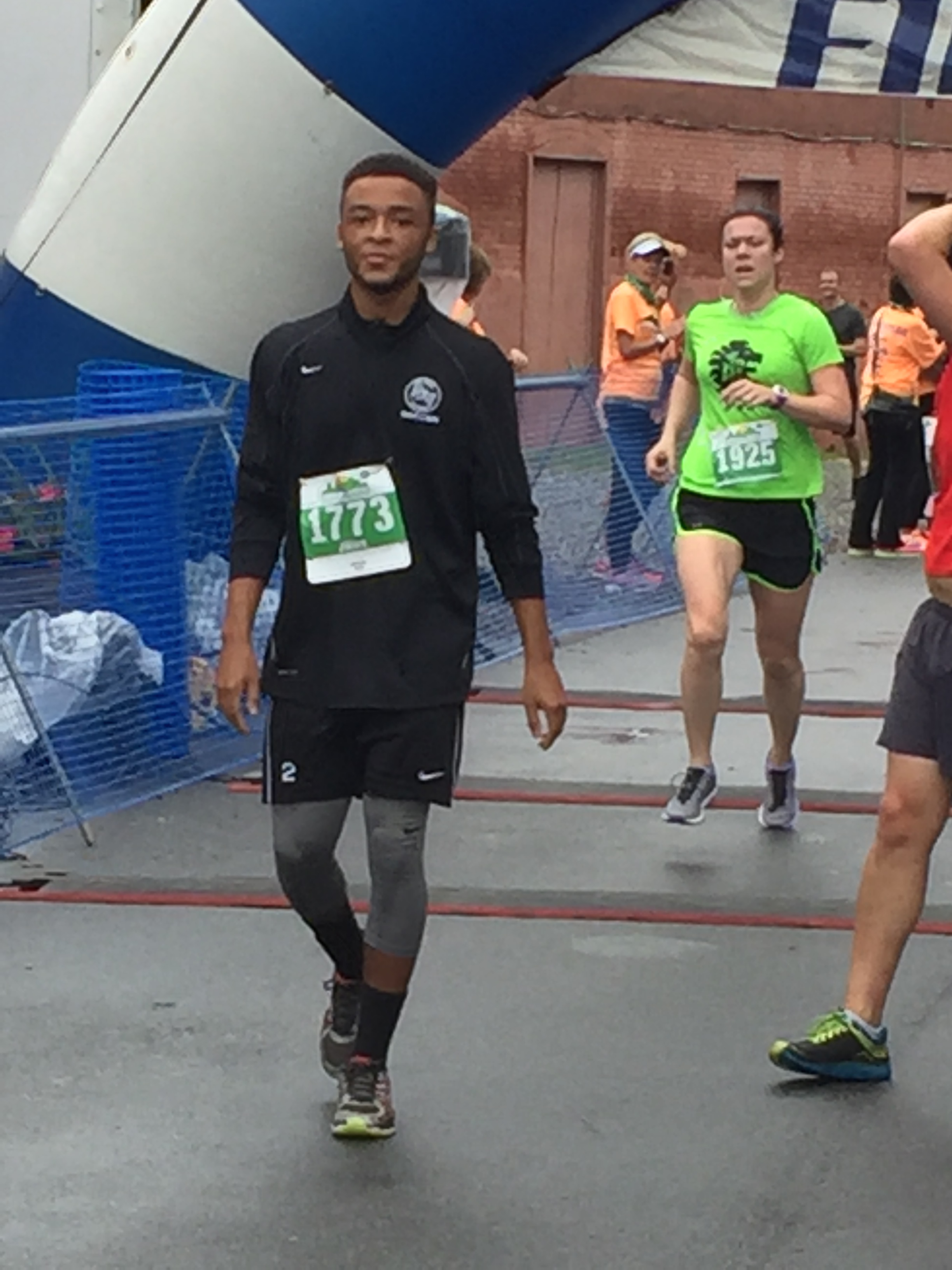 I did a quick warm-up, not even 5 min of jogging, plus my dynamic stretches of lunges, “toy soldier” kicks for the hammies, and leg swings for the hips/butt/groin.  The boys walked down the block with me.  It was a fun, funky area with restaurants, cute shops, breweries, and antique stores.  I made several trips to the bathroom and pondered taking my Immodium tablet, but ran out of water, so that was that.  I did take a 40mg caffeine Gu espresso, 15 min before the start.  I find the caffeine ones really give me a kick, but sometimes upset my stomach.  Not yesterday though, yay!
