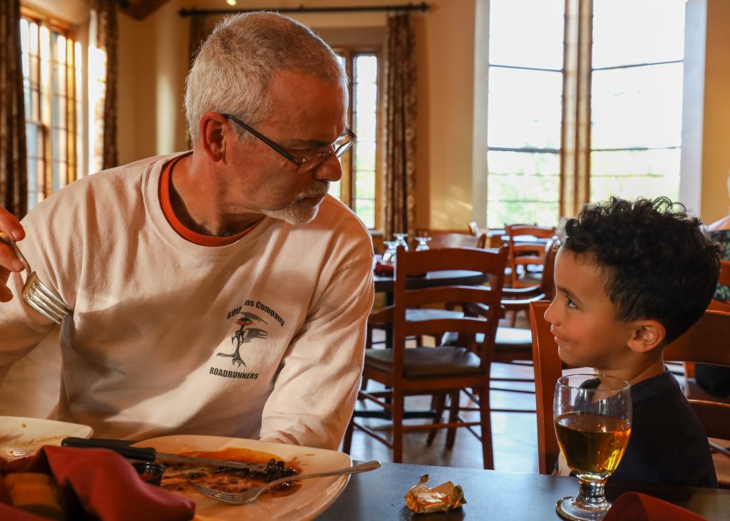 Dinner choices were limited, so we made reservations for Sylvan Lake Lodge’s restaurant. Thankfully, we were able to find something for everyone (lots of buffalo and steak on the menu!) I had the buffalo ravioli, which was delicious! Nearly everyone else had steak–except Asher, who ate bread (this age is very trying… he goes on “hunger strike” sometimes, especially when we travel).
