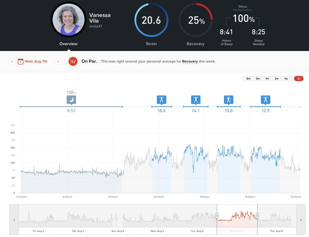 What could I have done differently? It’s hard to say, as stress can affect the nervous system, as can nutrition. I try to eat right, but I have noticed on days where I have more sweets, I have a lower recovery score. I did a LOT at work yesterday, so that might have upped my stress level without me even realizing it. I find the Whoop band gives me more insights than if I only used my Garmin watch, which doesn’t go in depth in areas like recovery (HRV) or day strain. They have added some areas, but I find the Whoop is far more accurate and easy to use.